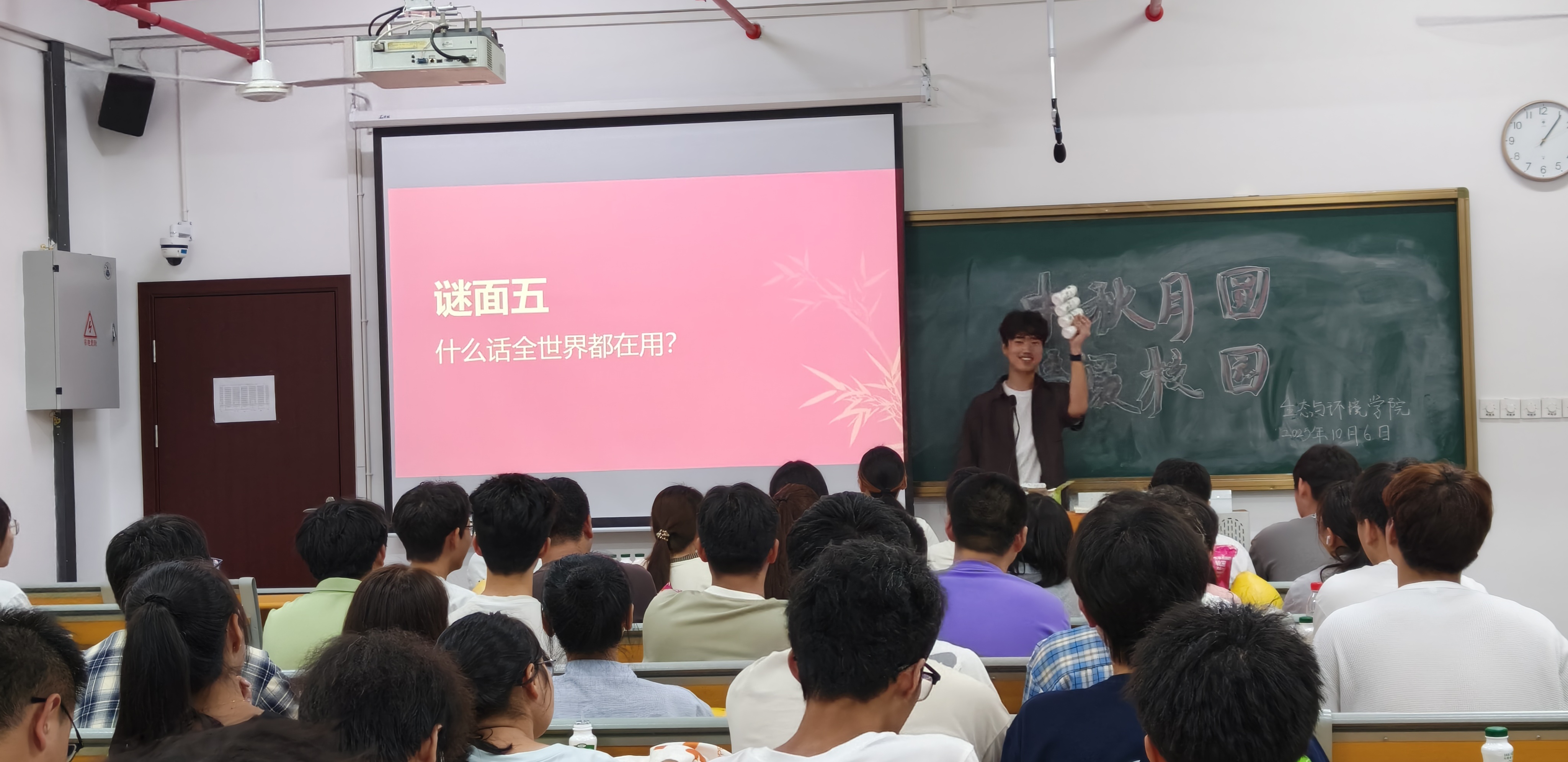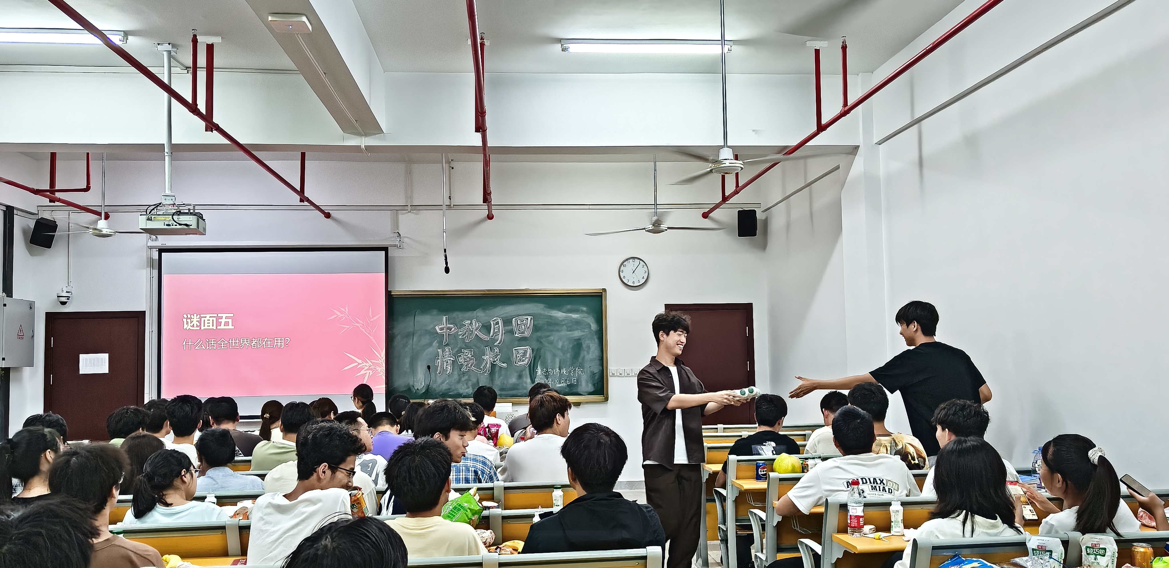 又是一年中秋月,正是人间好时节。10月6日晚,学院“中秋月圆 情暖校园”留校学生联欢活动于清源楼C306教室温情举行。学院党委副书记张海兵,辅导员刘姣姣、罗婷宇、孙苗苗,学院学生会主席团成员2023级环境科学专业邵锐杰、江求涛,与60余名留校学生齐聚一堂、共迎中秋、畅叙情谊。