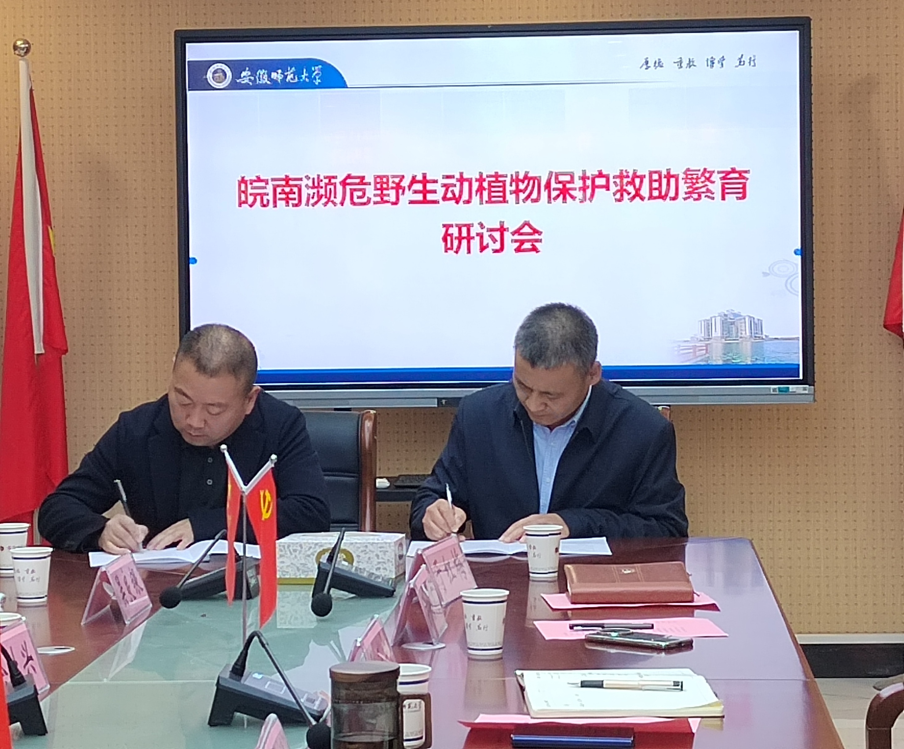 会上学院与皖南国家野生动物救护中心签署了合作协议,标志着校地合作进入深化阶段。
