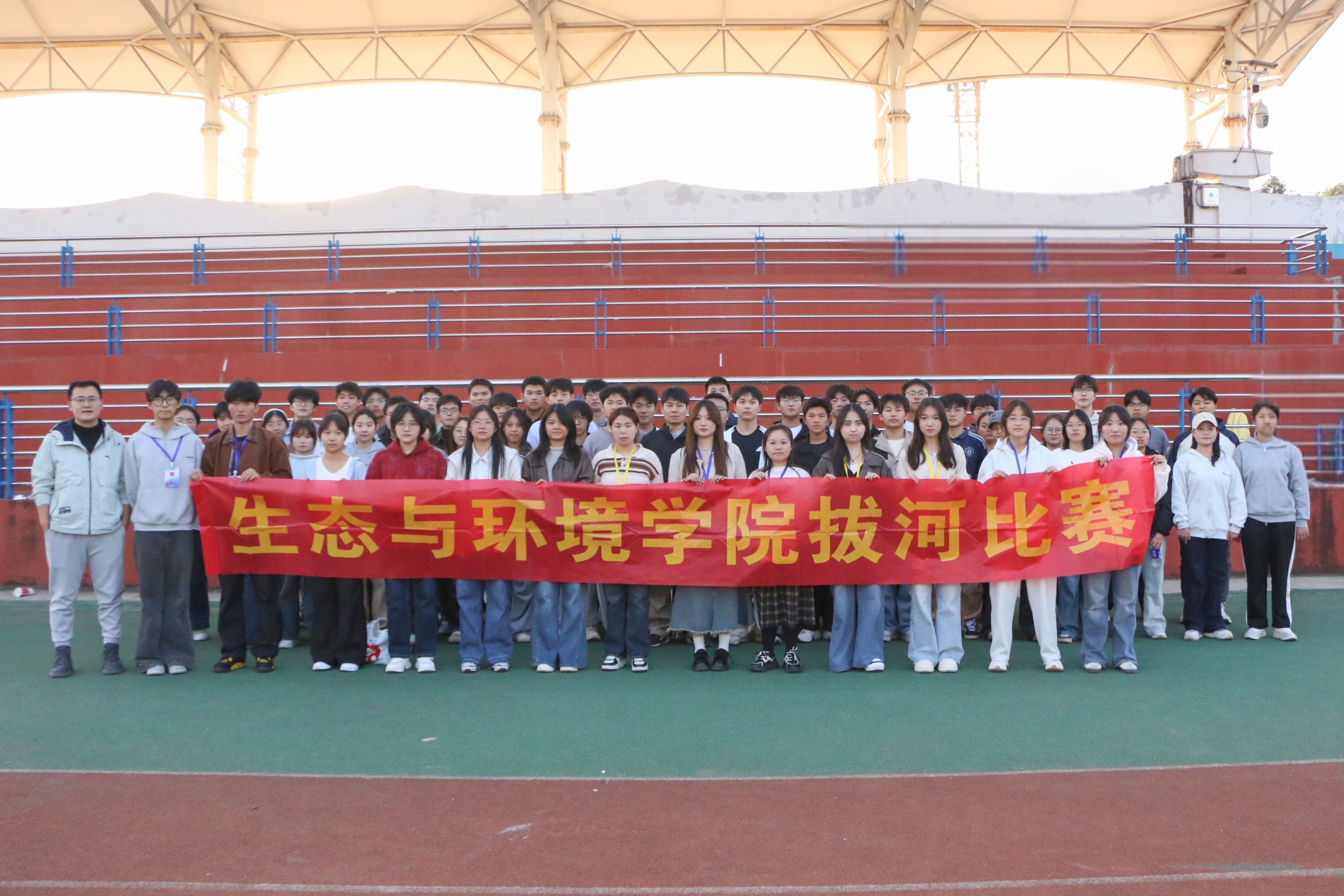 本次拔河比赛以班级为单位开展,除毕业班外,三个年级共有21支队伍参赛。参赛队员经过班级精心挑选,提前备赛,以良好的精神风貌代表班级参赛。随着裁判的哨声响起,各班代表队斗志昂扬、咬紧牙关、奋力拼搏,充分彰显出生环学子良好的集体荣誉感与昂扬的精神风貌。经过三轮淘汰赛与最终的决赛,2024级环境科学2班勇夺冠军,2025级环境工程2班荣获亚军,2025级生态学2班荣获季军,团委书记屈亚舒与选手合影留念。