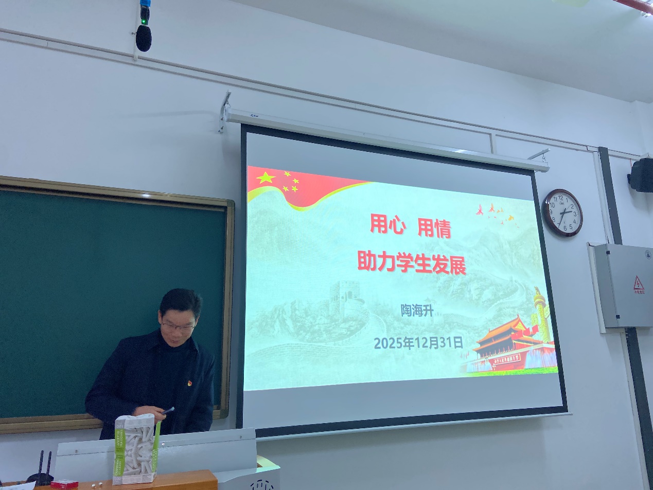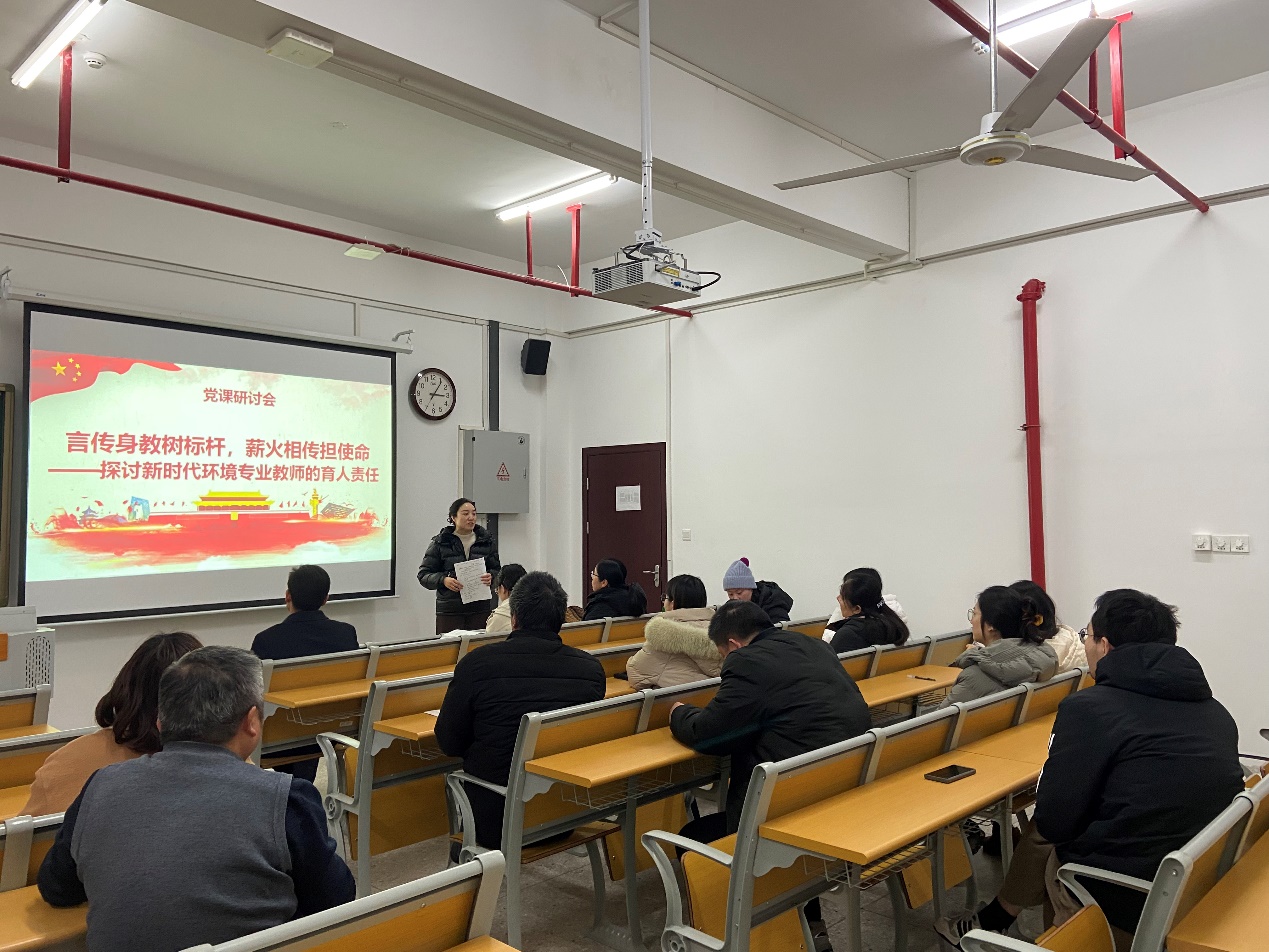 2025年12月31日下午,环境专业教工党支部在清源楼C301会议室组织召开专题党课学习。会议邀请了原支部书记陶海升教授传授育人经验。支部全体党员参加学习。