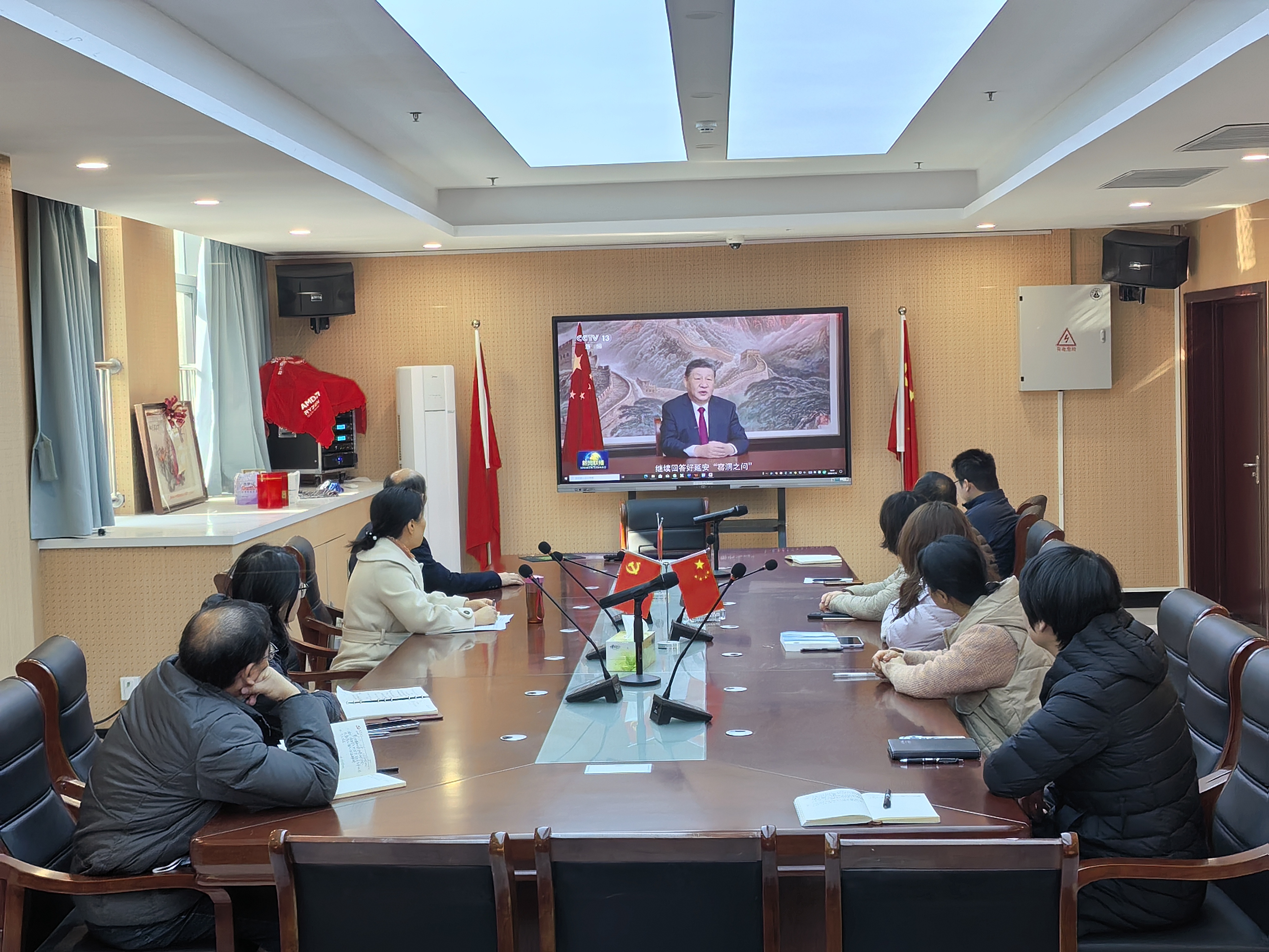与会人员以观看视频的方式学习了《国家主席习近平发表二〇二六年新年贺词》。支部组织委员徐苗青领学了习近平总书记重要文章《学习好贯彻好党的二十届四中全会精神》,支部宣传委员吴剑锋领学了2026年中央经济工作会议精神,支部纪检委员潘玲领学了中办国办印发的《关于做好2026年元旦春节期间有关工作的通知》。
