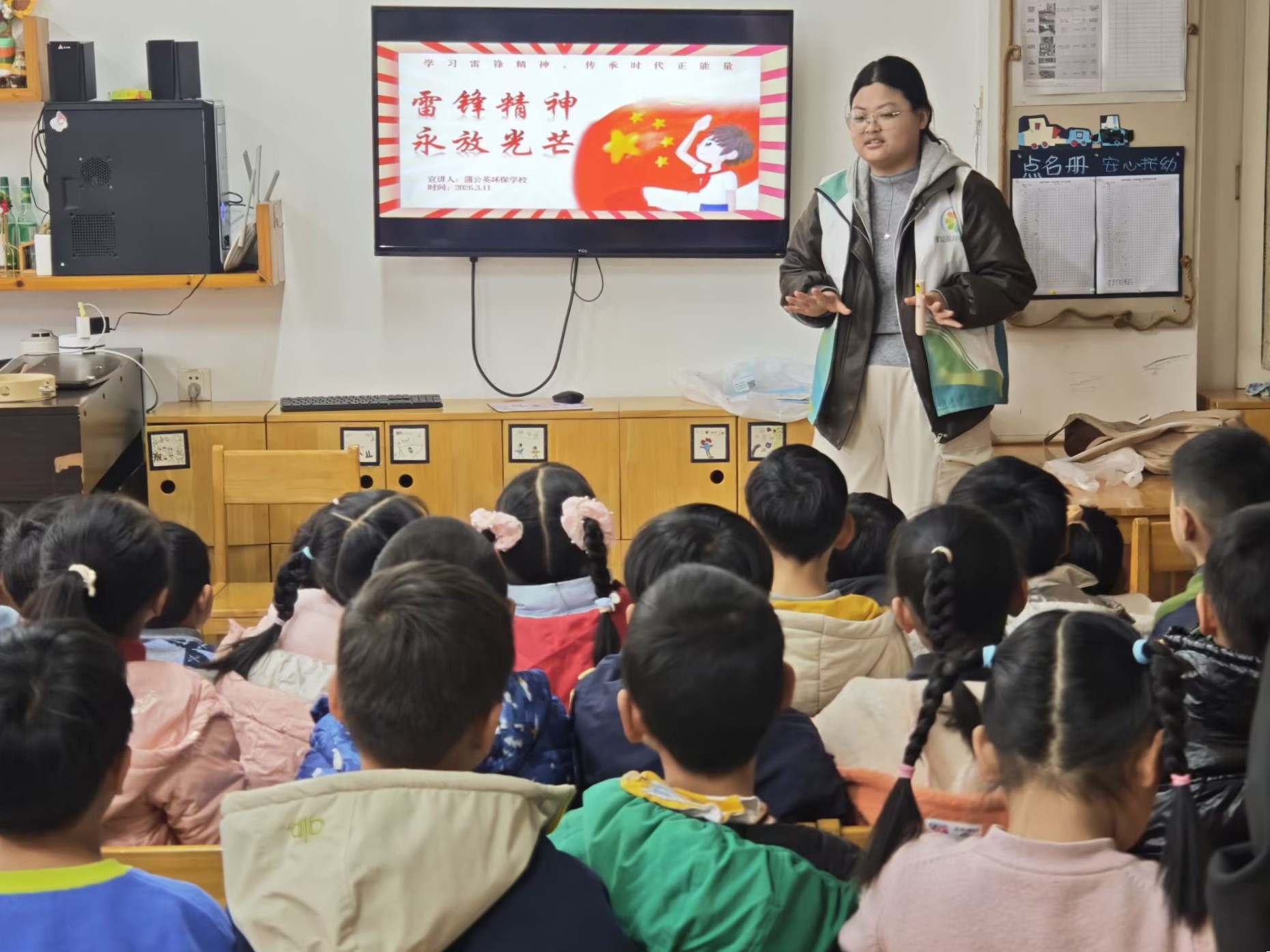 结合专业科普,播种公益种子。3月11日,学院蒲公英环保学校成员走进安徽师范大学附属幼儿园开展公益授课,讲授雷锋故事;3月15日,李治中博士带领水韵长江团队赴马塘书院开展“学雷锋”志愿科普活动。团队成员为小朋友们讲解水生植物与生态环保知识,将绿色希望与雷锋精神的温暖善意播撒进孩子们心田。