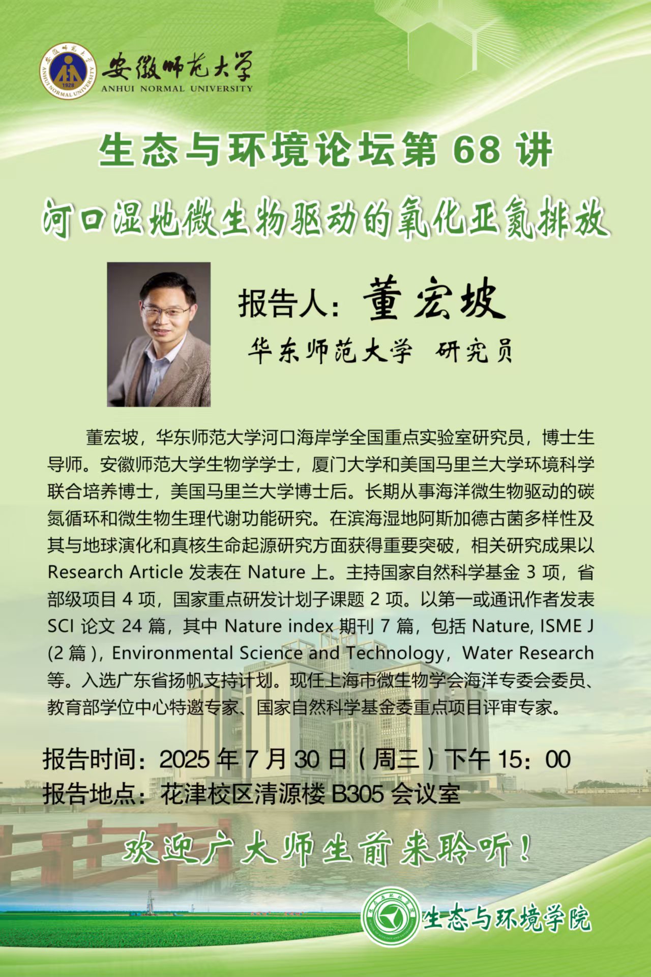 【学术预告】生态与环境论坛第68讲:河口湿地微生物驱动的氧化亚氮排放