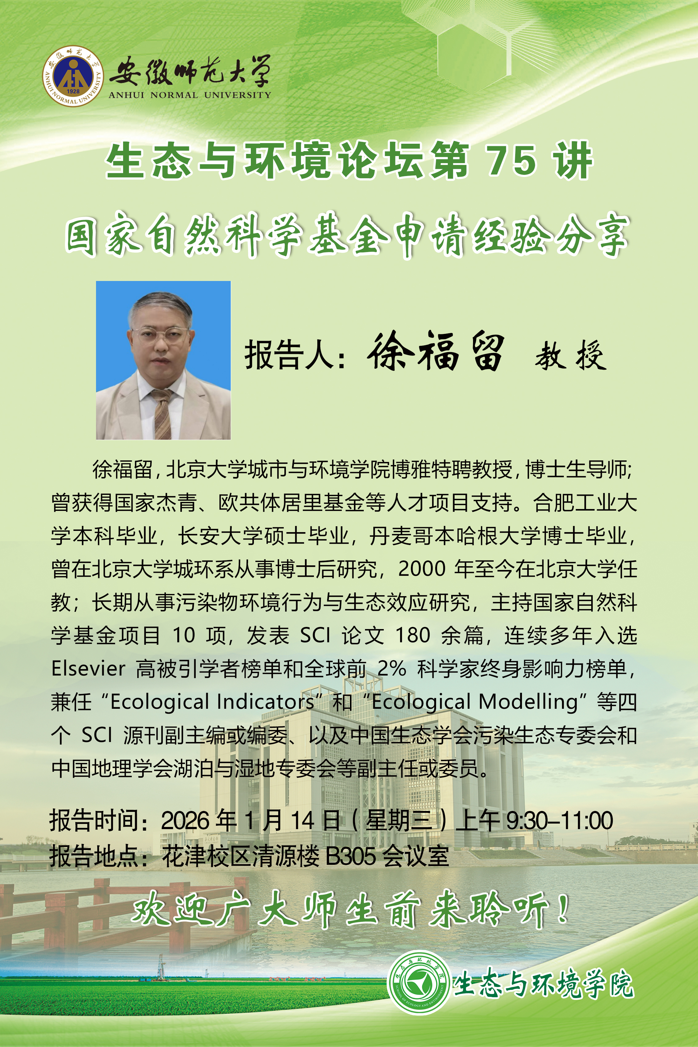 【学术预告】生态与环境论坛第75讲:国家自然科学基金申请经验分享