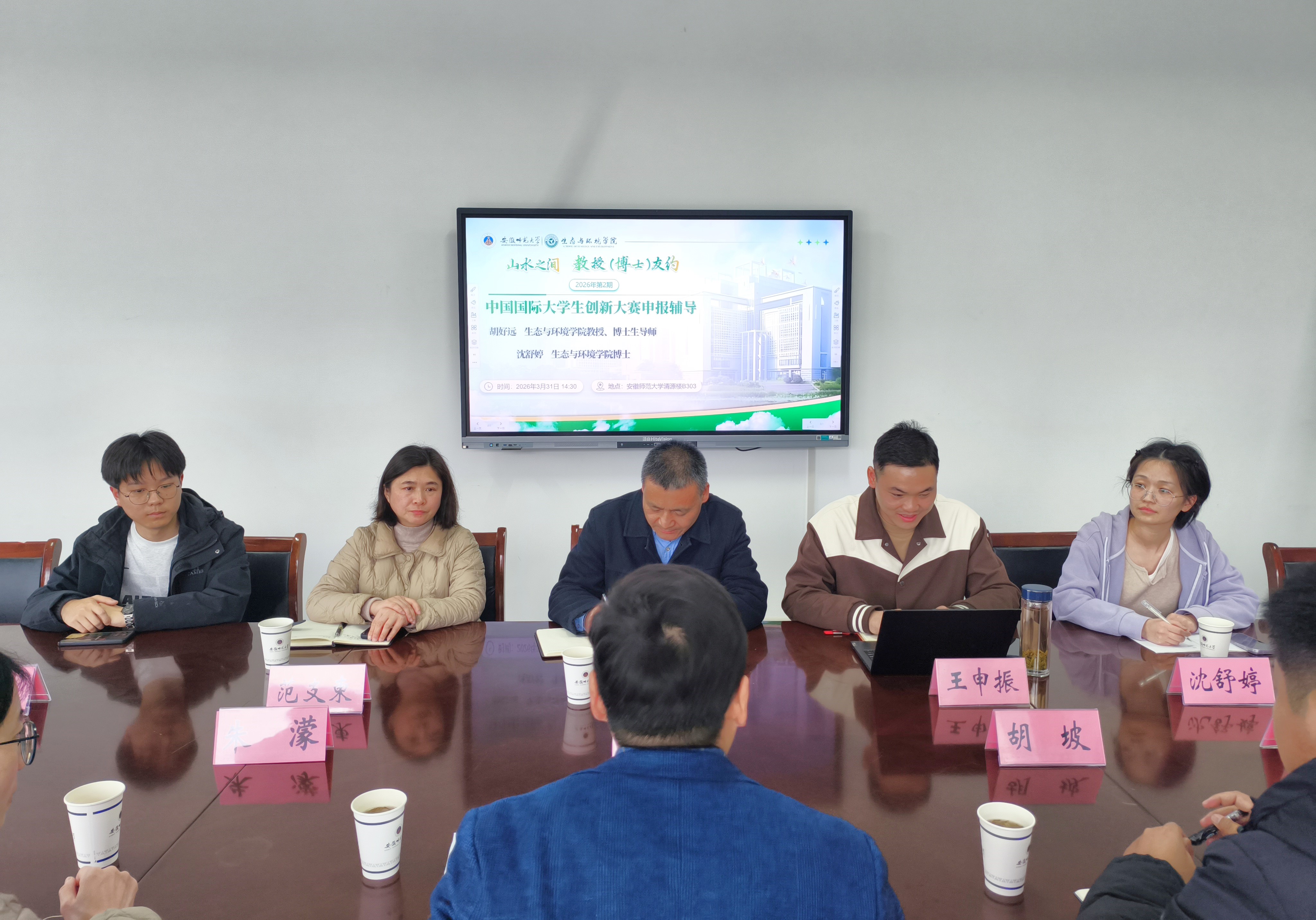 为切实提升学生创新创业竞赛能力,精准指导中国国际大学生创新大赛申报备赛工作,3月31日,学院在清源楼B303举办“山水之间·教授/博士友约”——中国国际大学生创新大赛项目申报辅导交流会。胡好远教授、沈舒婷博士、吴丽颖博士,院长助理朱濛副教授受邀参会交流。赛事政策与组织支持嘉宾、校团委素质拓展部部长王申振、实验中心实验员范支柬和12位参赛选手参会,会议由学院党委副书记张海兵主持。